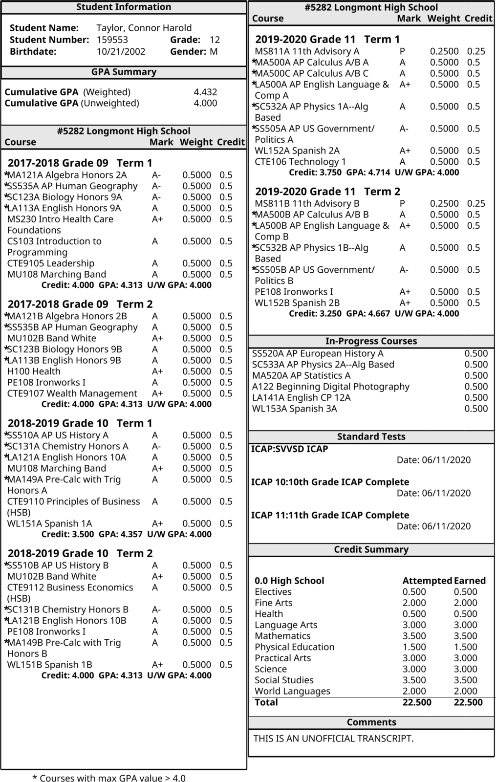Academic Transcript: